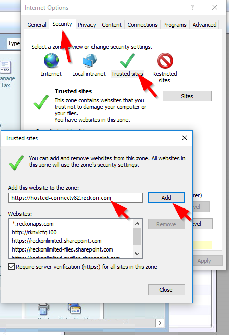 - Select Trusted sited (green Tick icon) as shown below