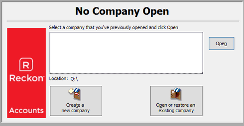 When prompted with the Open a Company dialog window, you will need locate the data file in either the root of the Q: drive or within a shared folder