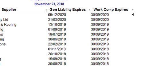 It would be good if I could run a report to show in advance what suppliers Workers comp is expiring