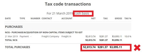 If you report GST on a CASH basis, this process doesn't work as it miscalculates the GST.