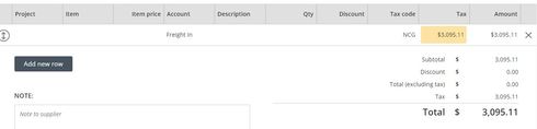 Enter the bill and enter NCG in the Tax code box, then enter $3095.11 in both the Tax Box and the Amount Box