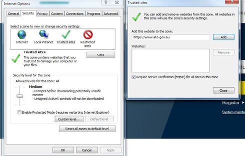 Then go to Trusted sites and put in https://portal.reckon.com