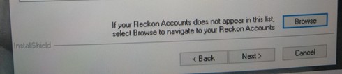The InstallShield Wizard is asking me to Select your Reckon Accounts.