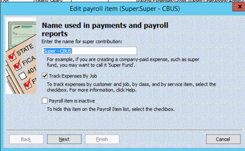 then when setting up your payroll items - super, additions, and other items that appear in the middle section of a pay cheque have the option to use tracking by job (class)... see below: