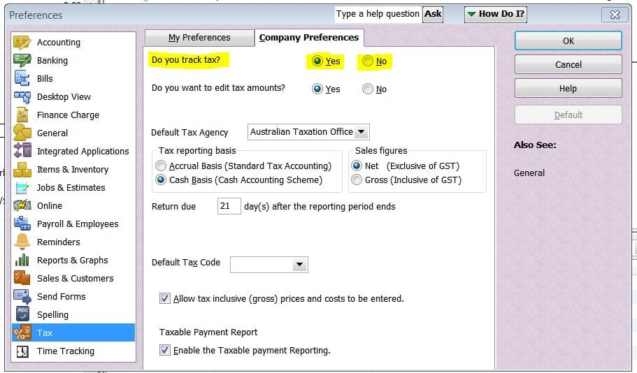 GST can be enabled or disabled at initial creation of your Company File - via the Setup Wizard - or later, under Company Preferences (located under the Edit dropdown menu > Preferences):